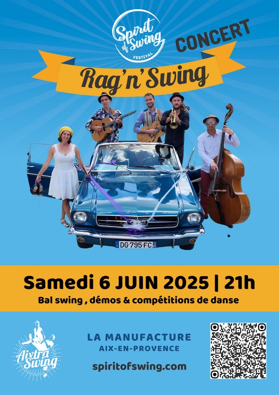 Le Spirit of Swing Festival vous invite à plusieurs concerts pour remonter le temps et découvrir l’ambiance du jazz de rue et des ballrooms des années 1930 : prenez votre aller simple, direction : « le Swing » : une fois que vous y aurez goûté vous ne pourrez plus vous passer de cette musique joyeuse, frénétique et entraînante comme aucune autre !
